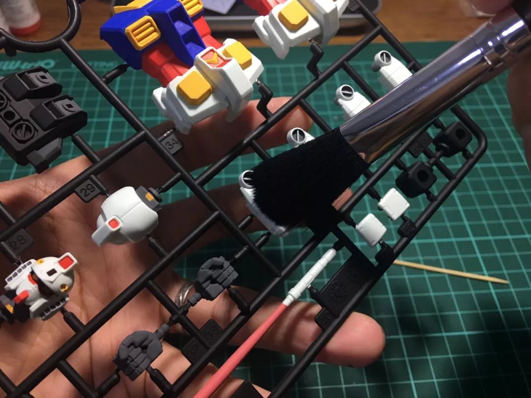 用刷子混合均匀后,用纸巾擦掉多余的油漆,然后再给零件上色。